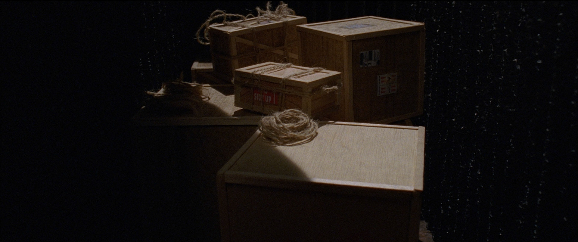 A man finds himself inside an isolated dark wooden box, the box is completely shut without any possible way for him to move at all, the only crack for of light and air is located behind his neck. The box is surrounded by complete silence while the man looks towards the origin of the camera in an attempt to understand what he is facing. The box is suddenly moves and turnaround and the man is being turnaround inside the box without a way to move except from sliding up and down. The box is settling in a place, the man tries to understand what is going around him when a burst of light thrives from the side of the box, he looks again towards the the camera while the box being broken apart and a grey room/space being reviled behind him. The man inside the box can not see what is actually around him while he is focusing on the other part of the box that is being pulled away and he obviously focuses on something inside of it as a door slams on his box and tighten it again. The box that was just pulled away is being shut as well and the wooden door is visible again. The box is moved again until it steels again into a new position. After a period that fells like forever a quiet knock is being sounded at the space outside the box, a shadow comes up from the bottom left which reviles a female hand that is gently touching the wooden surface which represents the last place that the sound was herd from. The hand seems to be afraid of replaying with a knock. The knock repeats itself and she decides to answer when she press her knuckles against the wood for the first time a cargo ship horn overrides the everything and the face of the women is being revealed while she looks up to the top wooden plate of the box. A shipping container, contains a massive amount of the boxes is being revealed, the boxes are scattered in all directions marked with a H number and a Head up marking.